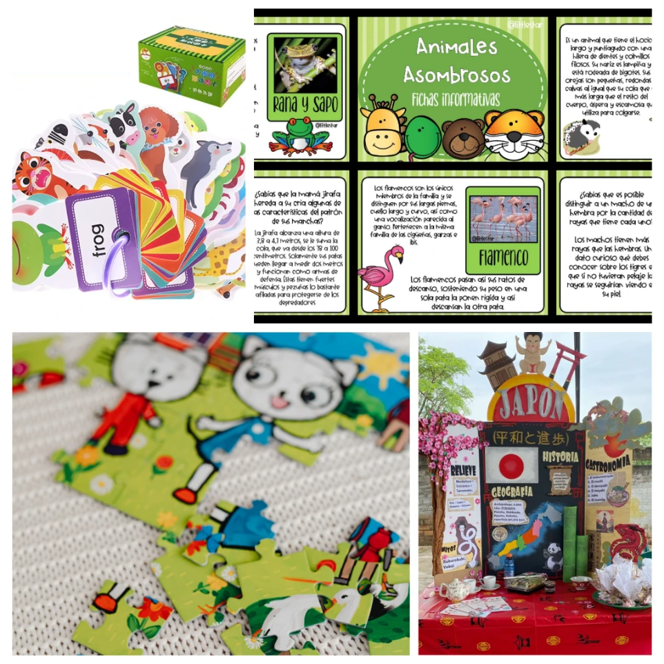 Ejemplos: Tarjetas didácticas, carteles móviles, fichas ilustradas, rompecabezas.